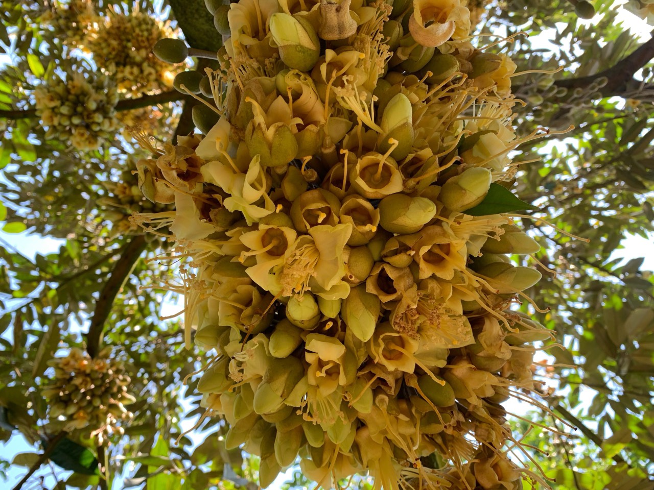 ⇒ Trồng cây sầu riêng phải trải qua rất nhiều giai đoạn và quá trình. Trong giai đoạn phát triển, chăm sóc cây sầu riêng từ cây con đến trưởng thành là điều không khó đối với nhà vườn. Nhưng để sầu riêng đạt được được năng suất và chất lượng tốt nhất thì giai đoạn nuôi bông và nuôi trái non là quan trọng nhất, vì trong thời kỳ này bông và trái non rất mẫn cảm với phân bón và thuốc phun xịt. Bên cạnh đó, chế độ cung cấp dinh dưỡng, nước tưới và duy trì độ ẩm cho cây cũng là một trong những yếu tố quan trọng, điều này sẽ giúp cho bông sầu riêng to khỏe, tạo tiền đề cho việc hình thành trái sau này.