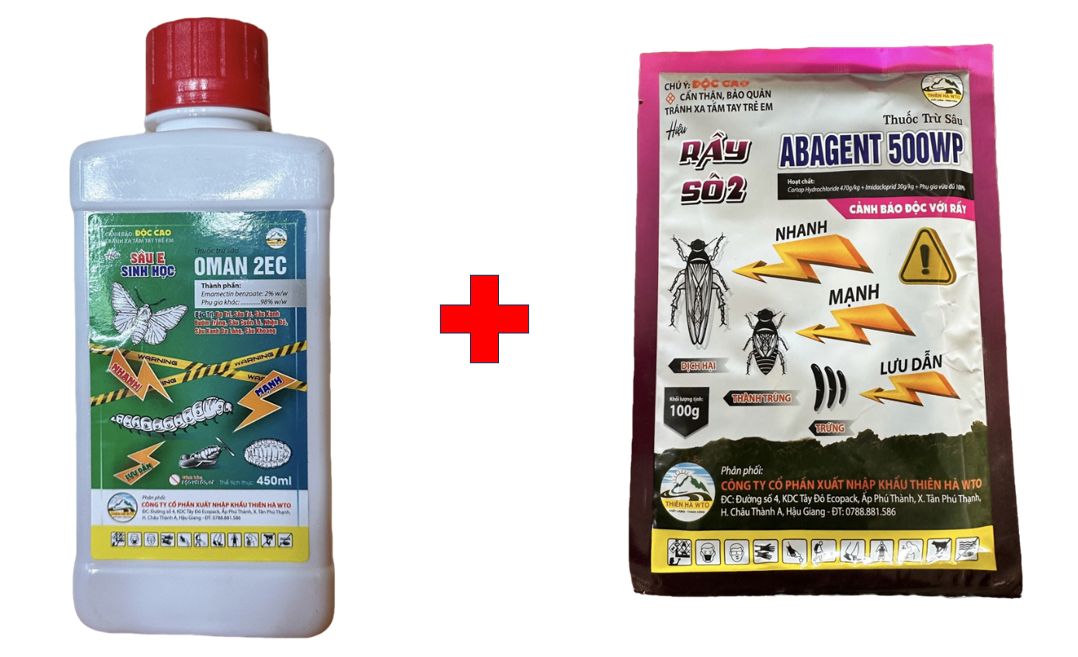 ► Sau 7-10 ngày tiến hành phun lại lần hai với thuốc SÂU E SINH HỌC (OMAN 2EC) với thành phần Emamectin Benzoate kết hợp với RẦY SỐ 2 (ABAGENT 500WP) với hoạt chất Cartap + Imidacloprid.