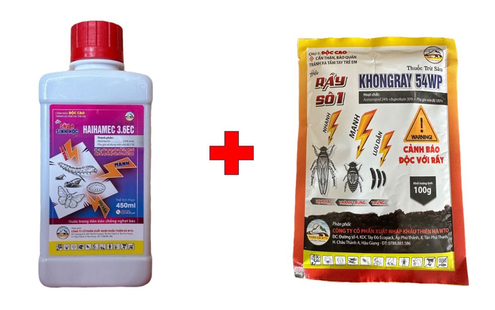 ► Thuốc SÂU A SINH HỌC (HAIHAMEC 3.6EC) với hoạt chất Abamectin và thuốc RẦY SỐ 1 (KHONGRAY 54WP) với thành phần Acetamiprid + Buprofezin.