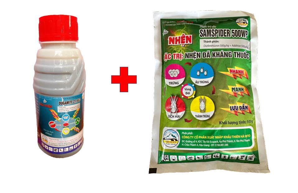 ⇒ Thiên Hà WTO giới thiệu đến bà con cặp sản phẩm có thể đáp ứng được yêu cầu trên . Đó là SÂU NHỆN ( DUGAMITE 27.5EC ) và CHUYÊN NHỆN ( SAMSPIDER 500WP ) giúp phòng ngừa nhện hiệu quả và giúp bộ lá xanh dày.
