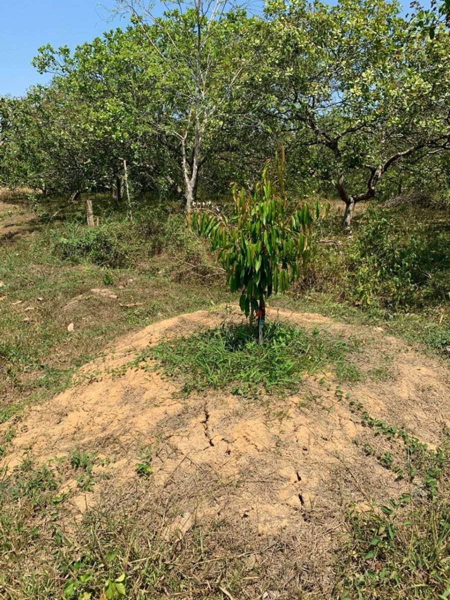 - Trường hợp nếu cây sầu riêng mới trồng từ 1 đến 2 tháng thì áp dụng kỹ thuật nâng gốc cao lên. Nếu trồng cây sầu riêng đã qua một thời gian hơi lâu thì cách tốt nhất là phá bồn, tạo rãnh thoát nước, không để động nước tại gốc cây.