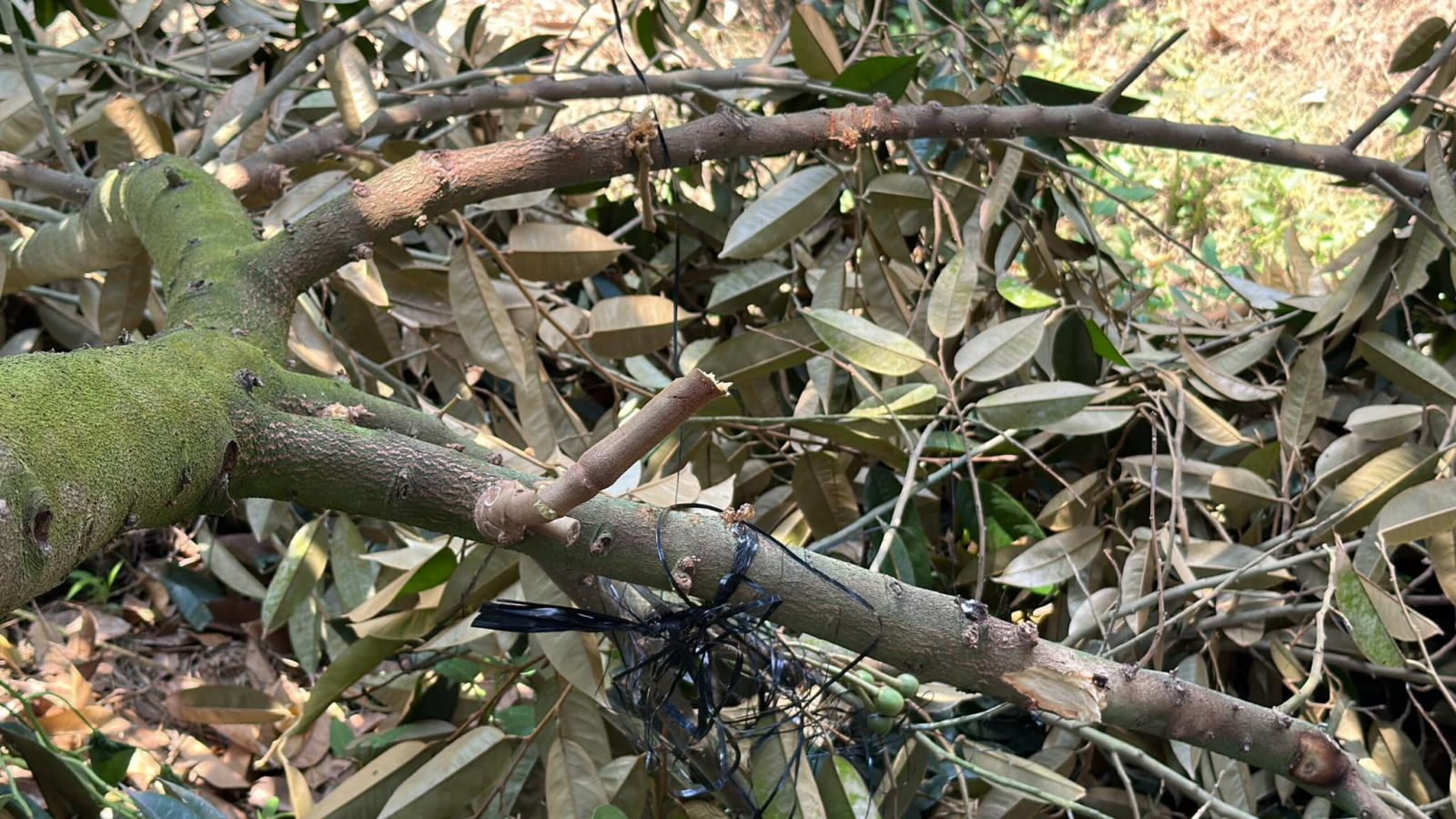 - Các cây bị gió mạnh vặn gãy 1 số cành, cắt bằng các đầu cành bị gió gãy. Sau đó quét thuốc trừ nấm lên vết cắt và thân gốc cây.