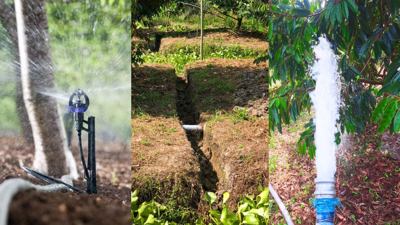 Bà con cần cung cấp lượng nước đầy đủ cho cây sầu riêng, tùy thuộc vào điều kiện khí hậu và loại đất mà có thể điều chỉnh lượng nước phù hợp, cần đảm bảo hệ thống thoát nước khi mưa xuống để tránh ngập úng và phát sinh mầm bệnh ở trong đất gây ra bệnh thối rễ.