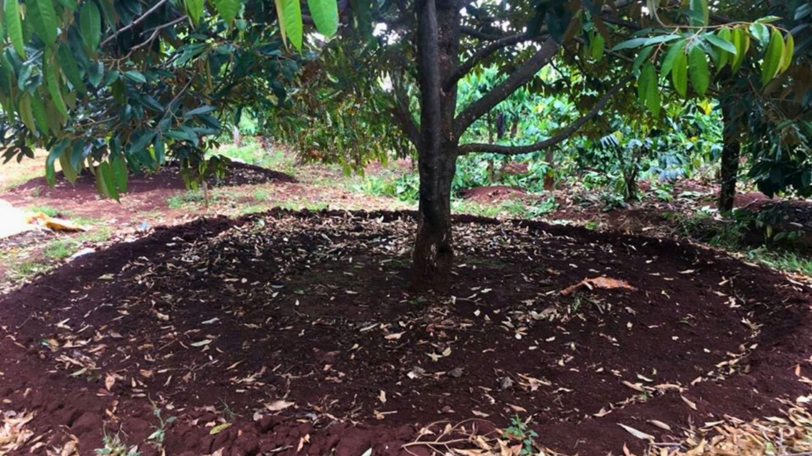 Dùng các loại vật dụng hữu cơ như rơm rạ, thân ngô, thân chuối, cỏ khô, tấm bạc.. để che phủ gốc cây sầu riêng nhằm duy trì độ ẩm cho góc cây, hạn chế nắng gắt chiếu trực tiếp vào gốc làm ảnh hưởng đến bộ rễ của cây.