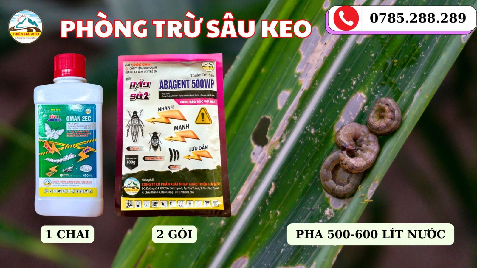 Quý bà con có thể sử dụng 1 chai thuốc SÂU E SINH HỌC kết hợp với 2 gói thuốc RẦY SỐ 2 pha cho 500-600 lít nước để phun phòng trừ sâu keo gây hại cho cây trồng.