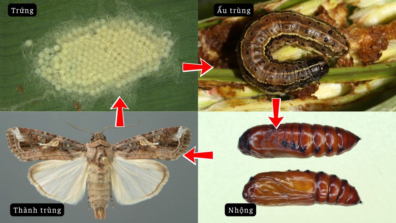 Vòng đời của sâu keo trải qua 4 giai đoạn gồm trứng, ấu trùng, nhộng và thành trùng. Sâu xuất hiện ở thời tiết nóng và ẩm, trung bình mỗi năm sâu đẻ 4 -6 lứa, nhiệt độ thấp trong mùa mưa thì đẻ 1-2 lứa.