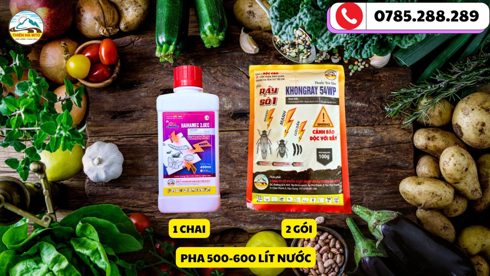 - Phun thuốc để phòng trừ côn trùng gây hại . Bà con có thể sử dụng 1 chai thuốc SÂU A SINH HỌC kết hợp với 2 gói RẦY SỐ 1 pha cho 500-600 lít nước để phun cho cây.