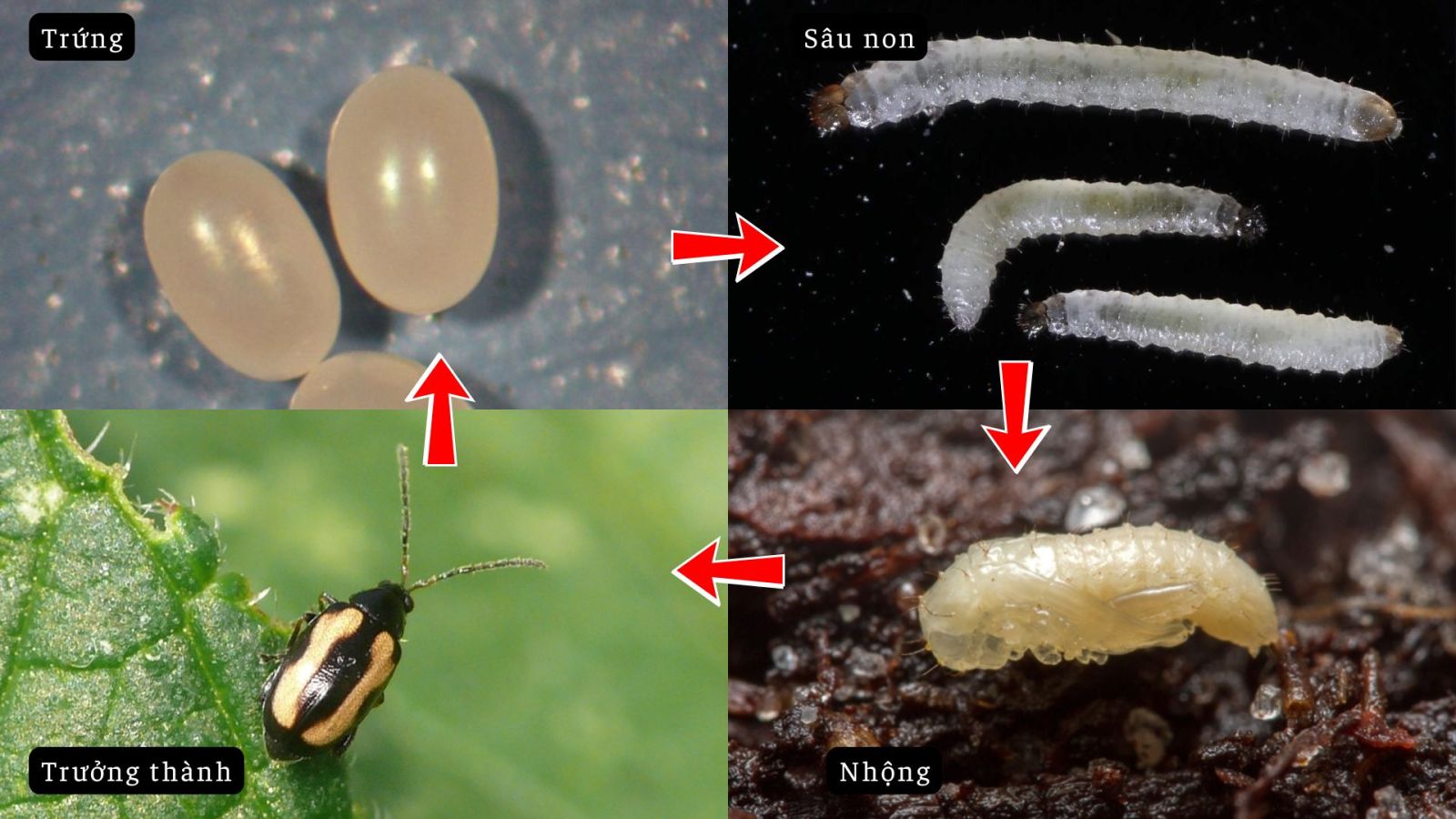 - Vòng đời bọ nhảy trải qua 4 giai đoạn gồm trứng, sâu non, nhộng và trưởng thành.