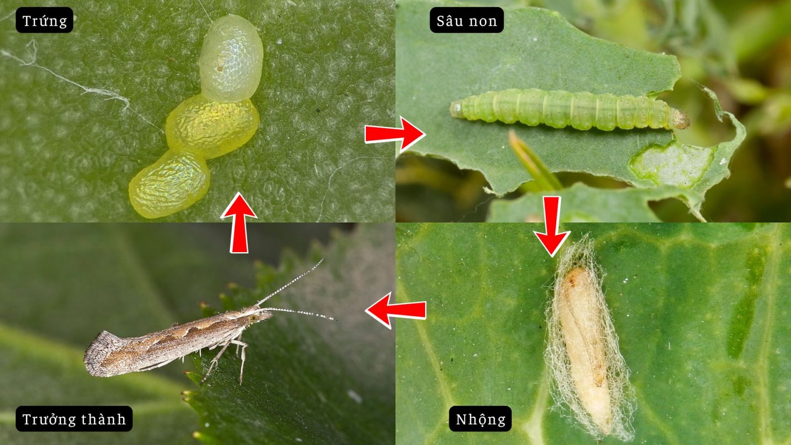 - Vòng đời sâu tơ gồm 4 giai đoạn gồm trứng, sâu non, nhộng và trưởng thành.