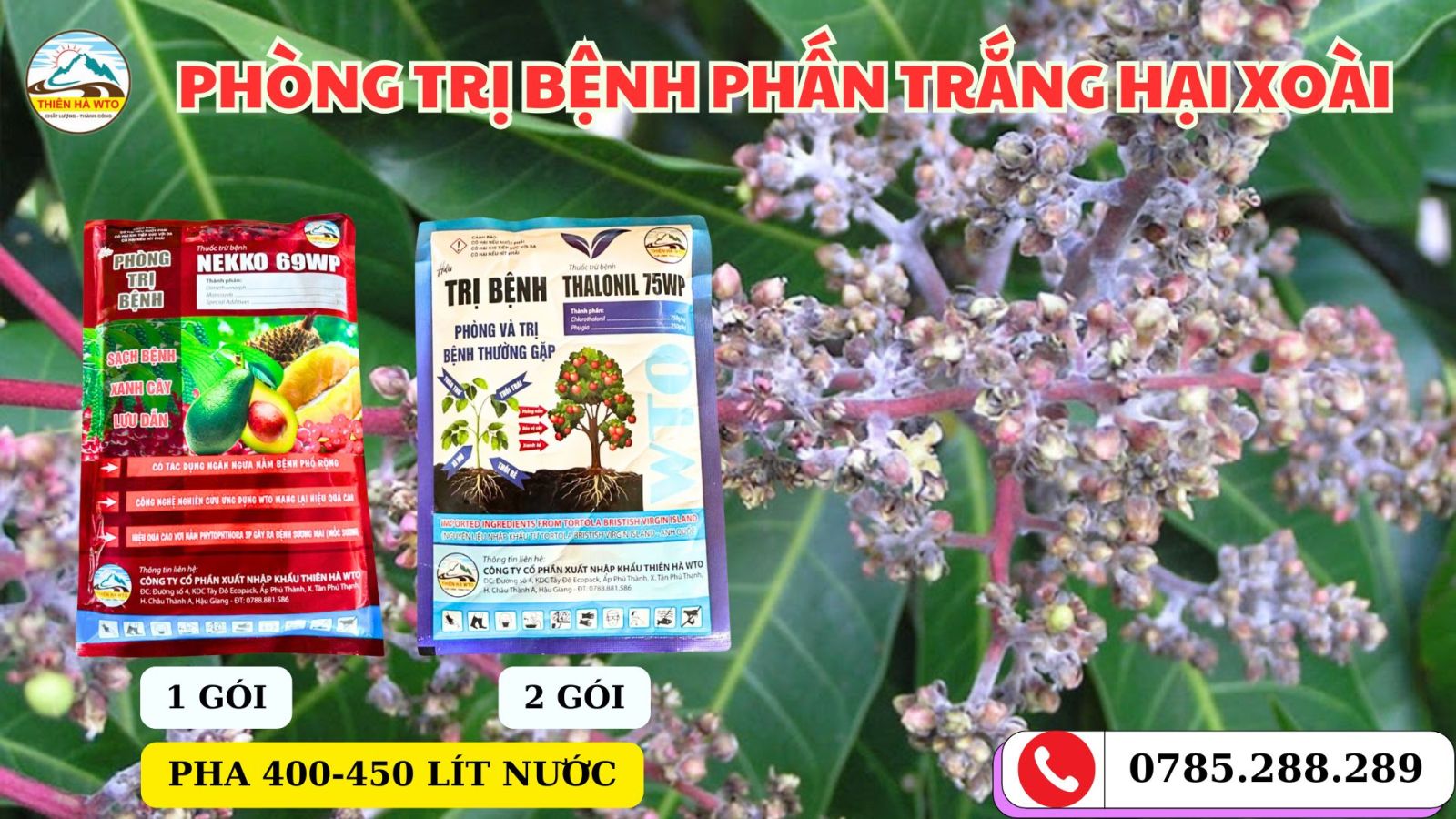 Để phòng trị bệnh phấn trắng bà con có thể sử dụng 1 gói PHÒNG TRỊ BỆNH kết hợp với 2 gói TRỊ BỆNH pha cho 400-450 lít nước để phun cho cây.