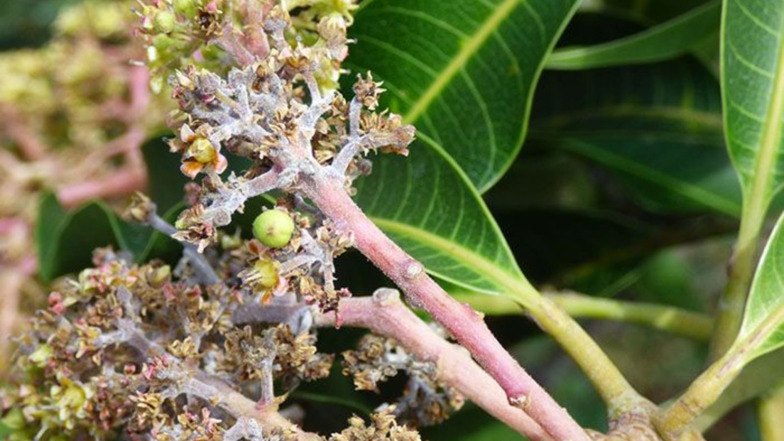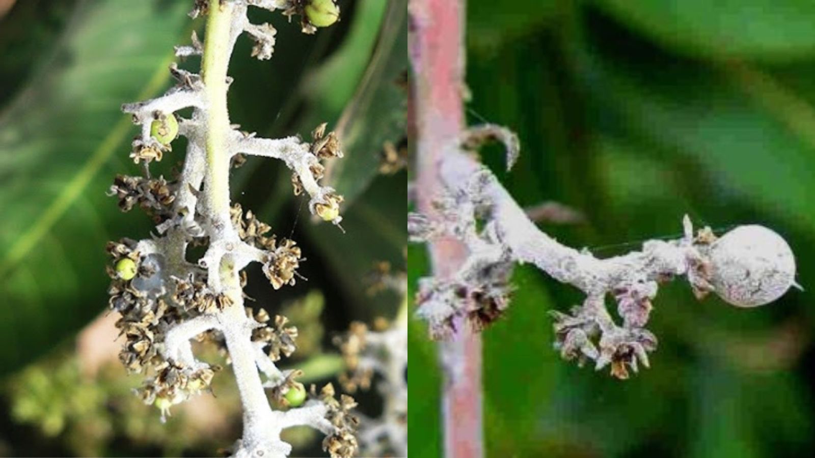 Bệnh phấn trắng trên cây xoài là do nấm Oidium mangiferae gây ra, bệnh gây hại trong giai đoạn cây ra cành non, lá non, nụ, hoa và trái non