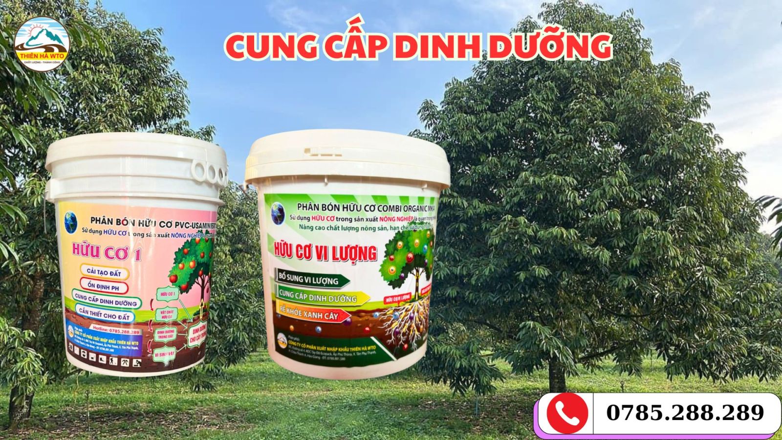 Sử dụng xô HỮU CƠ VI LƯỢNG, HỮU CƠ 1 nhằm bổ sung dưỡng chất cho vườn cây sầu riêng, tăng vi sinh vật có lợi cho đất, canh tác lâu ngày cộng với việc sử dụng chất hóa học làm cho môi trường đất dần mất đi hệ vi sinh vật có lợi. Vì vậy bổ sung lại nguồn vi sinh vật đất là rất quan trọng.