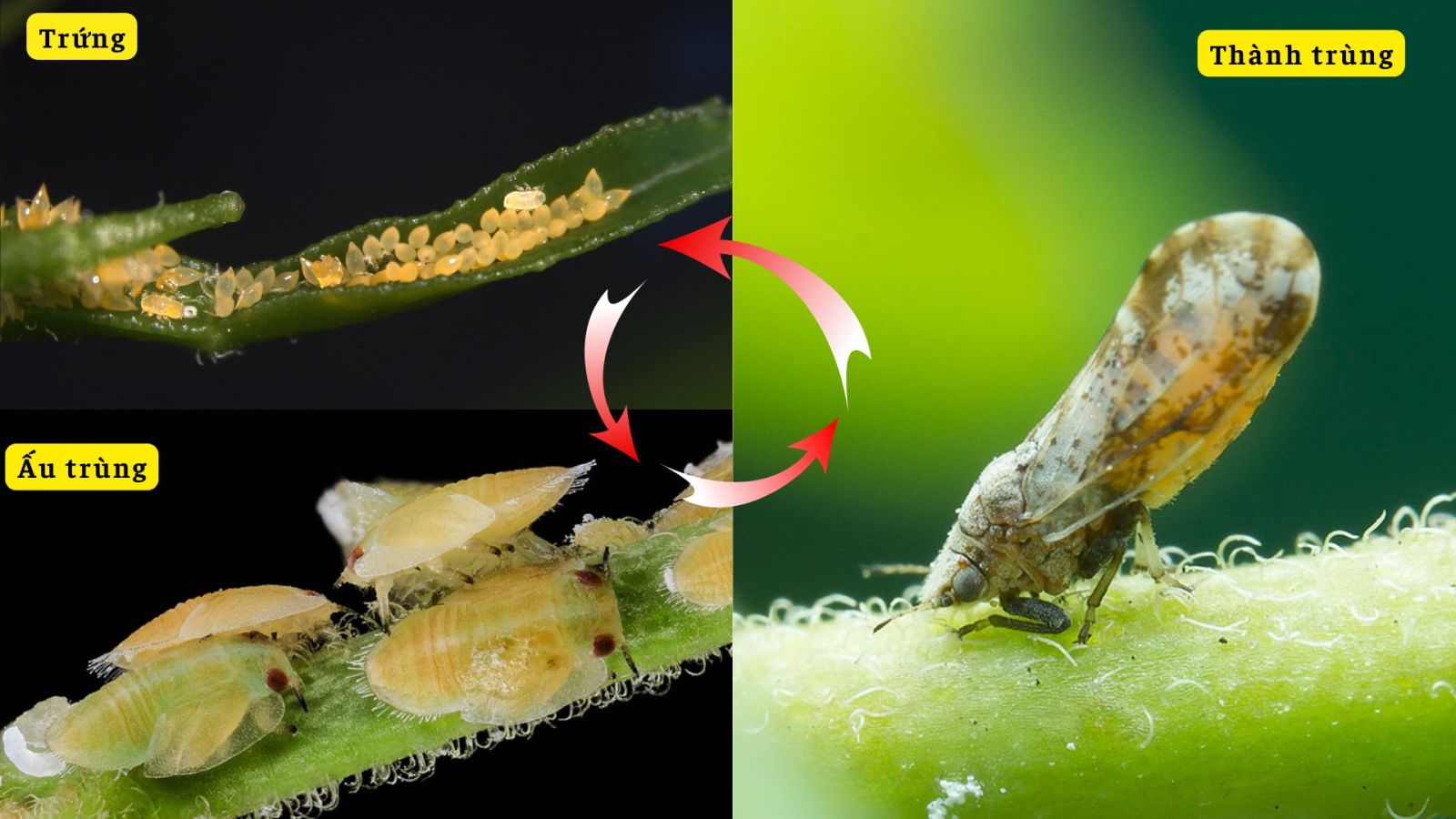 Vòng đời của rầy chổng cánh kéo dài từ 28-32 ngày bao gồm 3 giai đoạn: trứng, ấu trùng, rầy trưởng thành