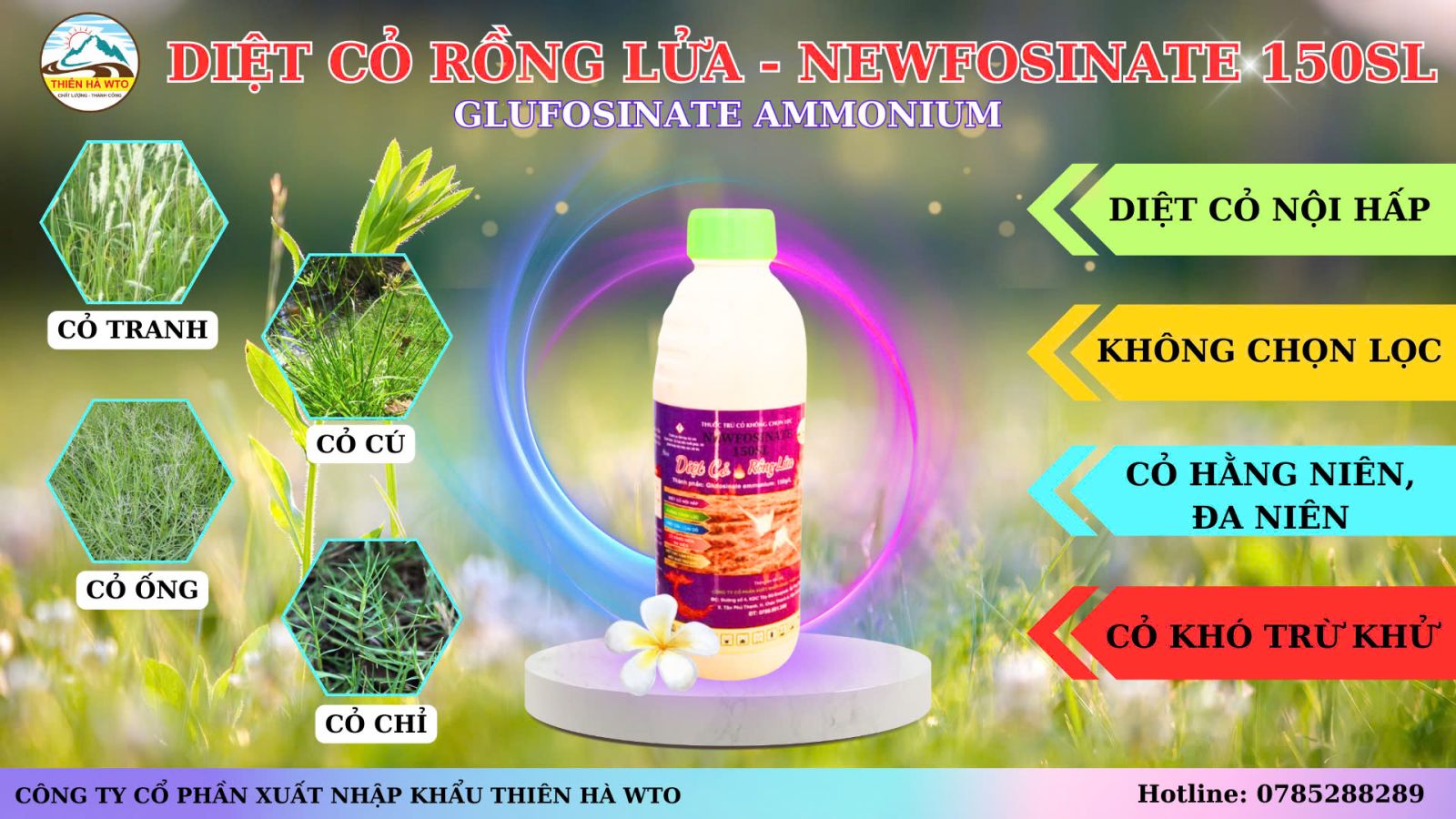 Hiện nay, Glufosinate ammonium đã được CÔNG TY CP XNK THIÊN HÀ WTO phân phối với tên gọi DIỆT CỎ RỒNG LỬA (NEWFOSINATE 150SL) với hiệu quả phòng trừ nhiều loại cỏ kể cả cỏ khó trừ khử.