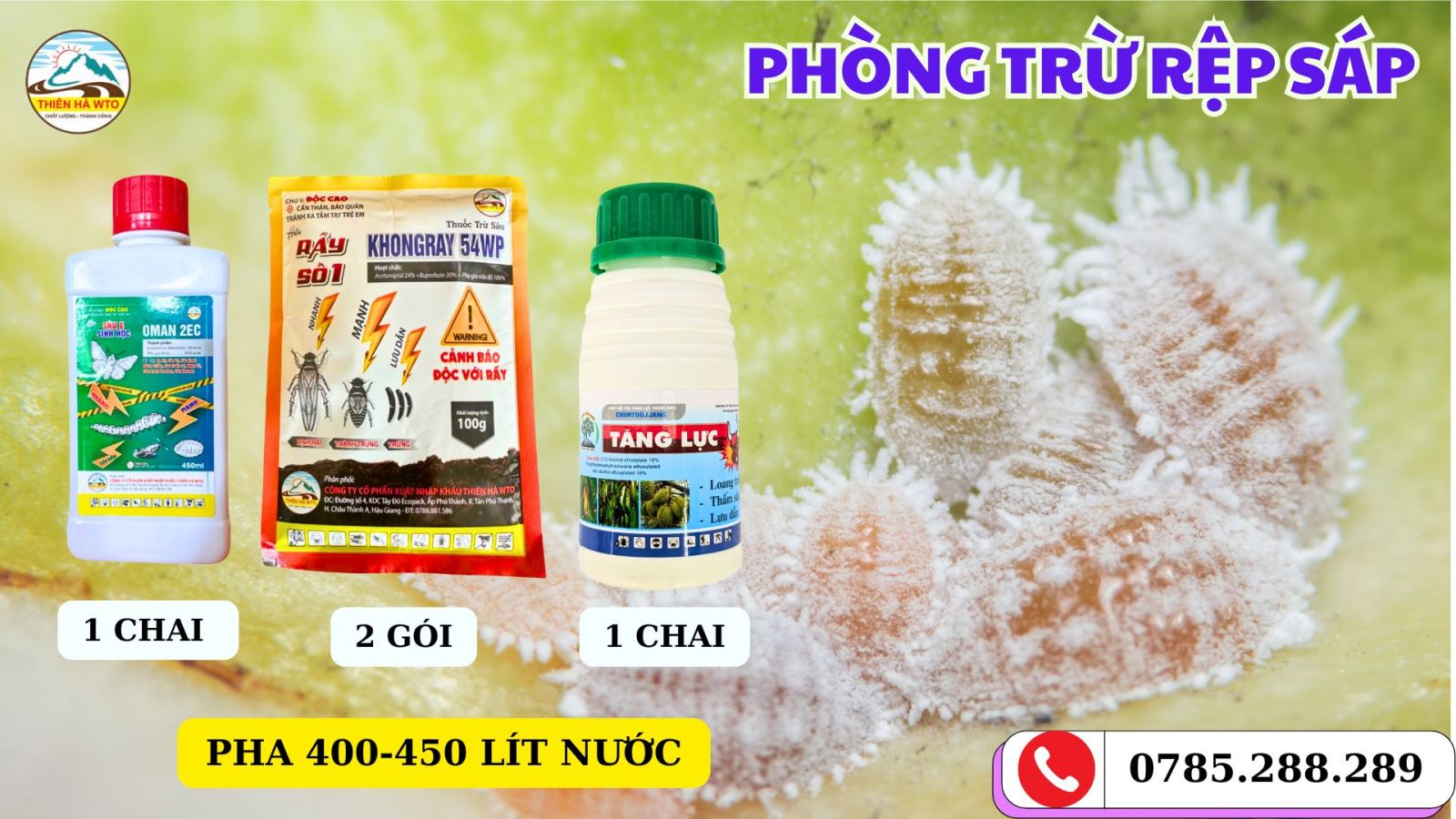 Để việc phòng trừ rệp sáp có hiệu quả hơn, bà con có thể kết hợp thêm với 1 chai Tăng Lực để giúp tăng hiệu quả thấm sâu vào tế bào.