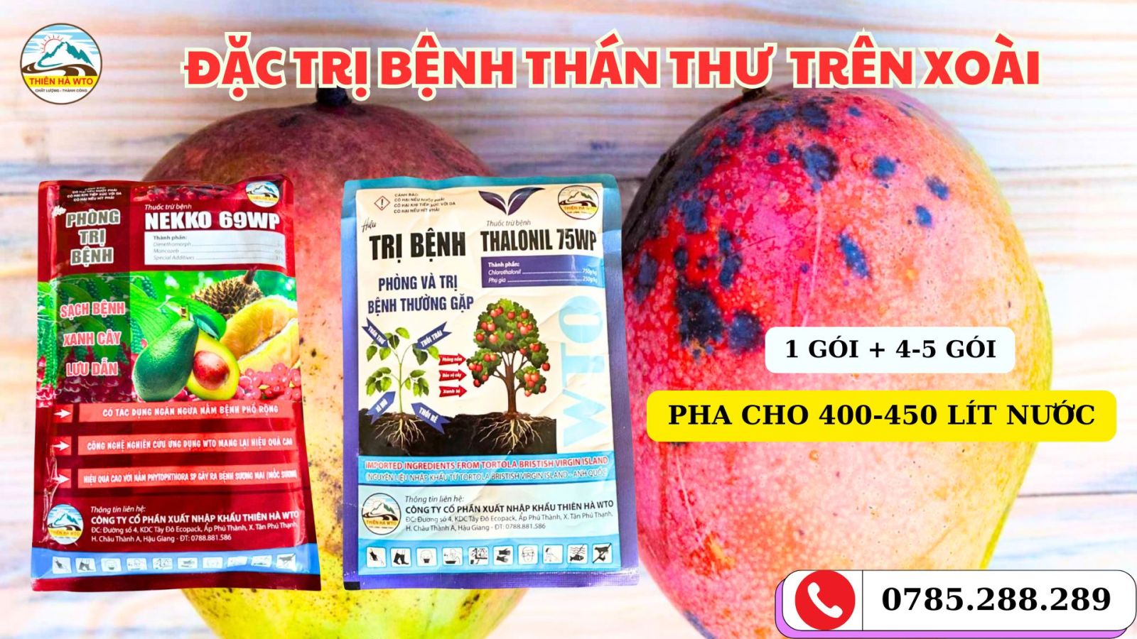 Quý bà con có thể sử dụng 4-5 gói TRỊ BỆNH kết hợp với 1 gói PHÒNG TRỊ BỆNH pha với 400 – 450 lít nước phun cho cây để đặc trị bệnh thán thư trên cây xoài.