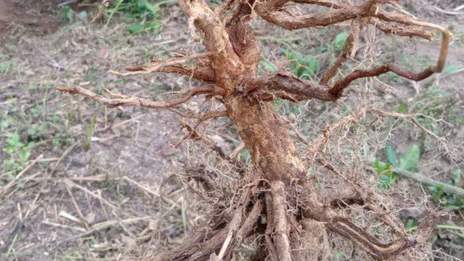 - Trên rễ: Rễ non bị thối có màu nâu đen, rễ non đứt dần ra khỏi rễ chính, rễ chết dần làm cây phát triển chậm, sau đó nấm lây lan dần đến các rễ lớn và phần thân cây phía trên.