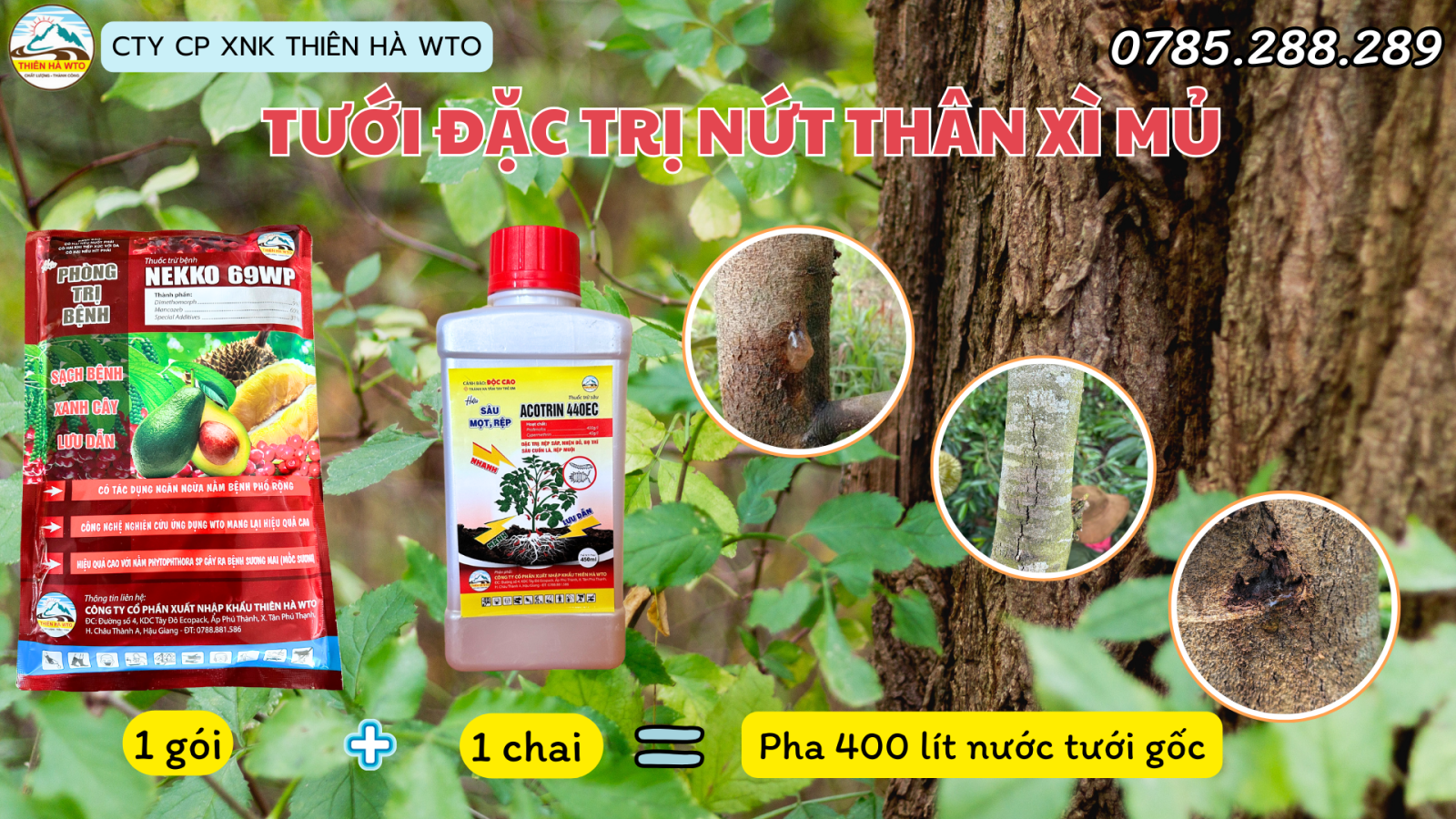 Ngoài ra, bà con có thể sử dụng 1 gói TRỊ BỆNH kết hợp với 100ml SÂU MỌT RỆP pha cho 500ml nước quét lên thân cây.