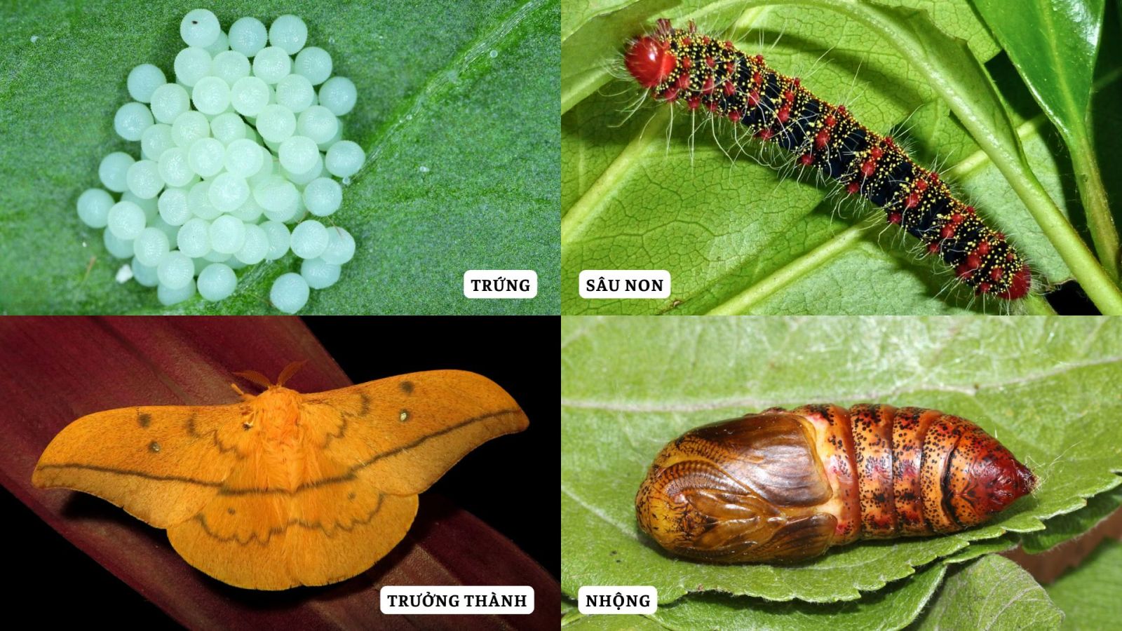 Sâu non: Có 5 giai đoạn phát triển, có nhiều màu sắc chủ yếu là vàng nhạt, đỏ, đen và nâu. Khi trưởng thành, sâu có chiều dài từ 20 – 60 mm, thân có nhiều gai, có 10 đốt nối đầu và đuôi. Sâu non thường gây hại vào lúc sáng sớm hoặc chiều tối, trời nắng bò xuống thân hoặc mặt dưới lá để ẩn nấp.