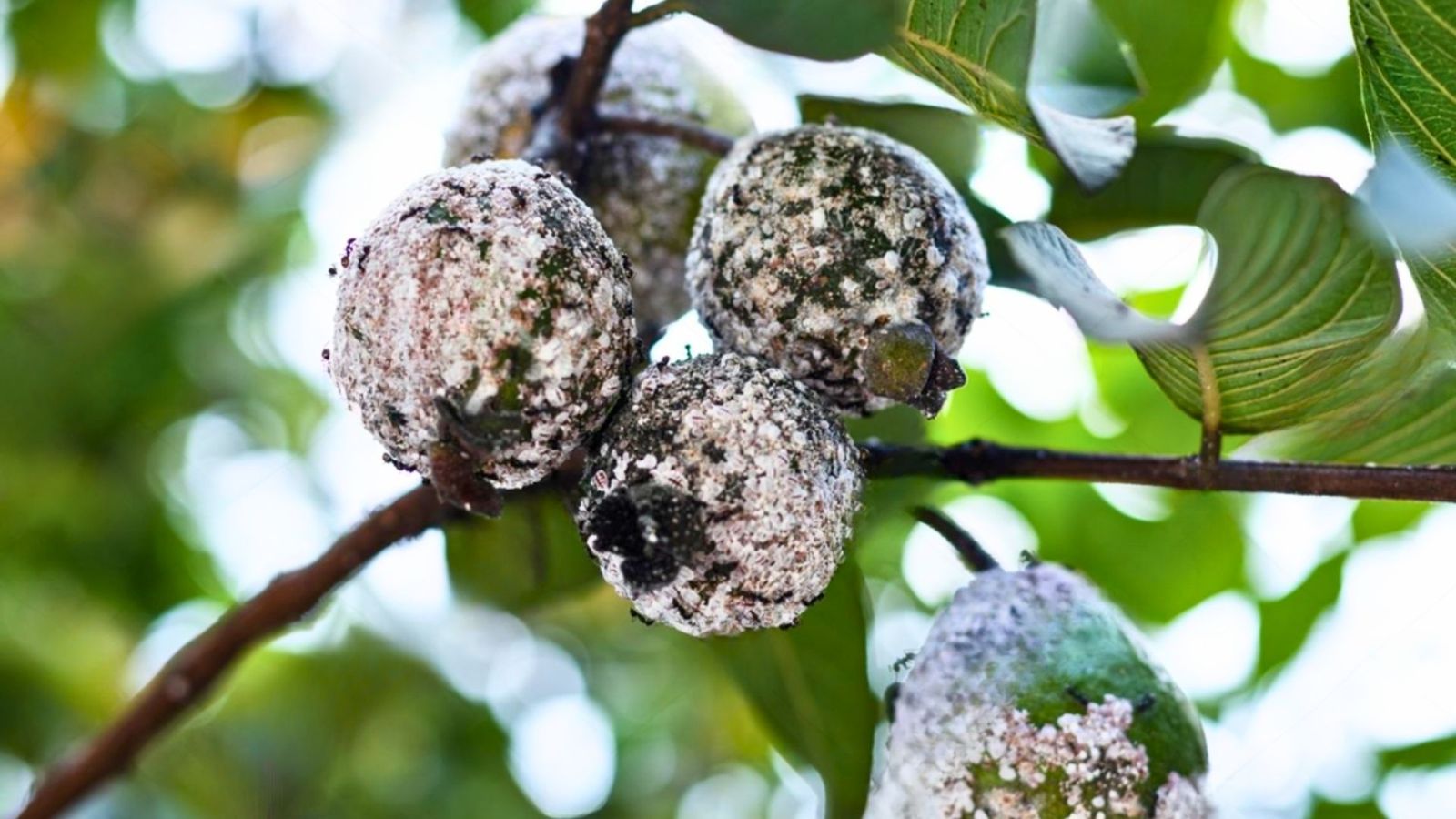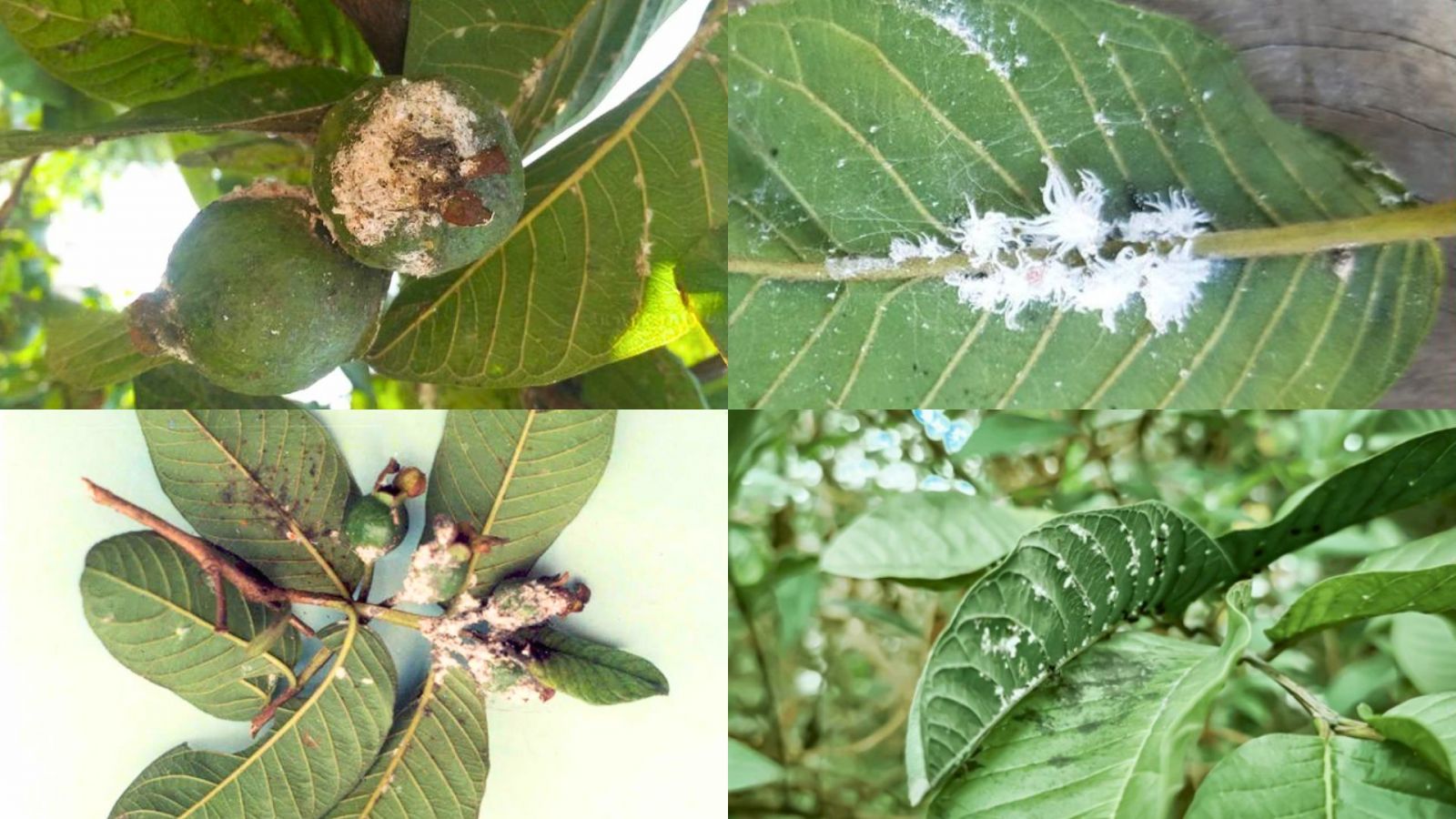 Rệp sáp tấn công trên cả hoa, lá và quả của cây ổi.
