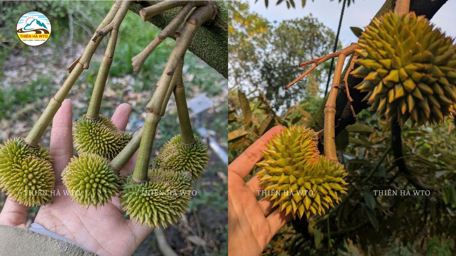 - Sự cạnh tranh dinh dưỡng trong cùng một chùm: Nhiều bà con sợ trái rụng nhiều giảm năng suất nên để quá nhiều trái trên cùng một chùm mà không tiến hành tỉa trái hay tỉa quá ít. Khi cây sầu riêng có quá nhiều quả trên chùm, chúng sẽ cạnh tranh dinh dưỡng với nhau, dẫn đến trái bị méo và không phát triển đầy đủ.