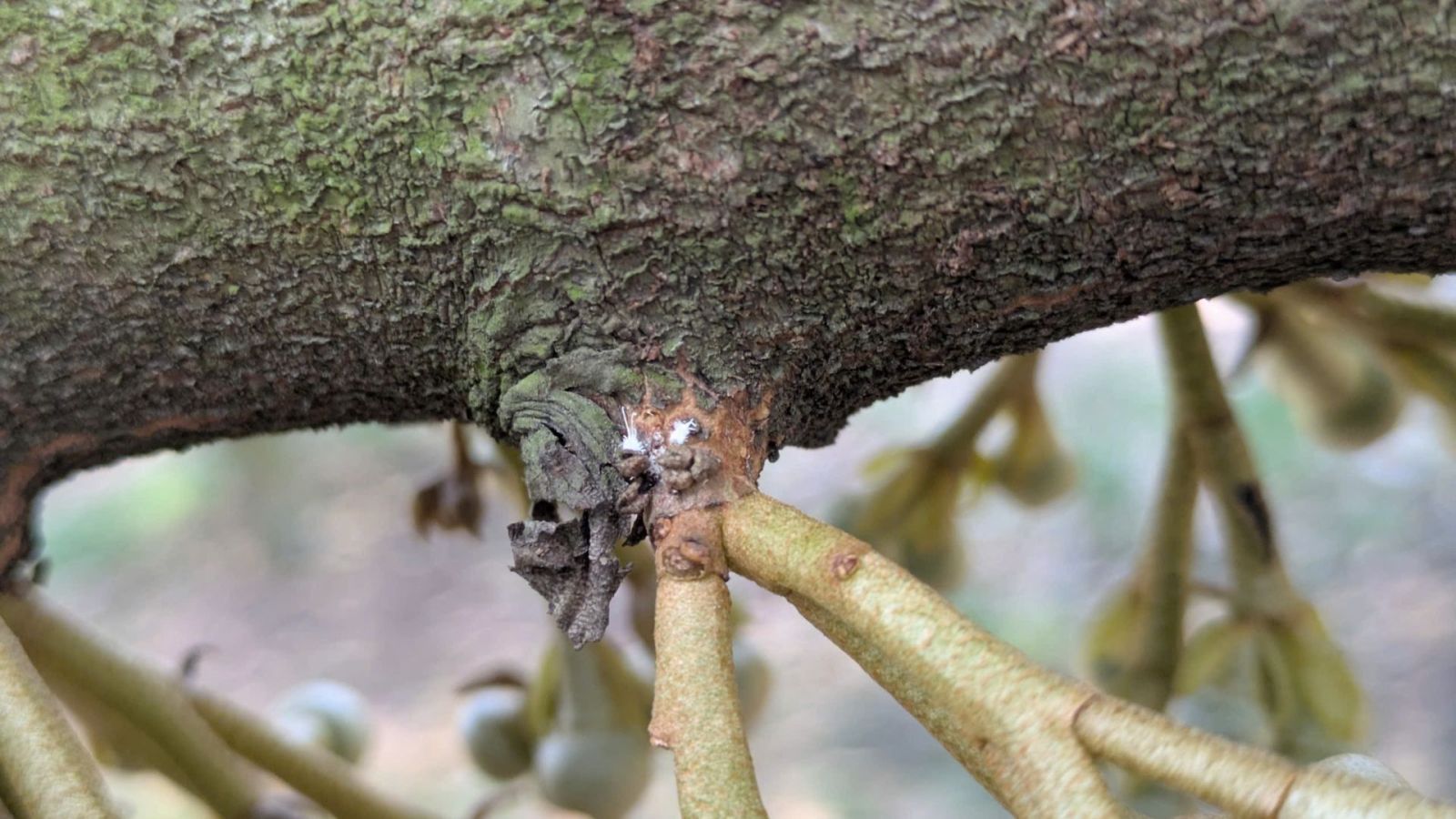 Trên trái non: Khi bị rệp sáp tấn công, trái non sẽ xuất hiện tình trạng gai to, gai nhỏ không đều. Quả bị méo mó, không lớn và dễ bị rụng.