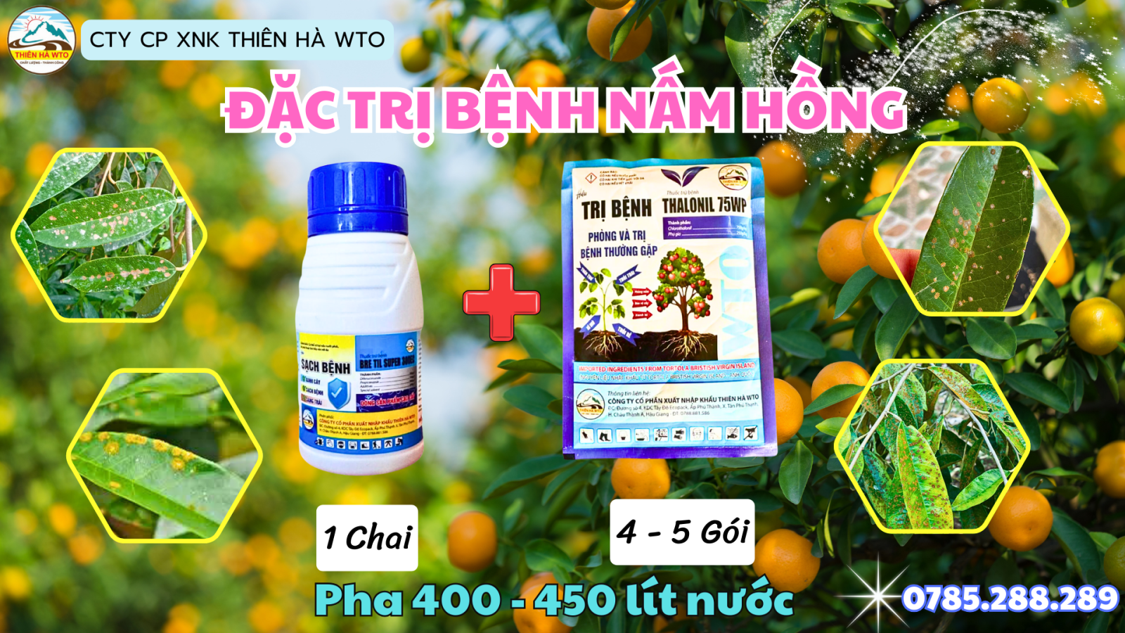 => Quý bà con có thể sự dụng 1 chai thuốc SẠCH BỆNH kết hợp với 4-5 gói thuốc TRỊ BỆNH pha với 400 – 450 lít nước để phun xịt phòng trị bệnh nấm hồng cho cây sầu riêng.