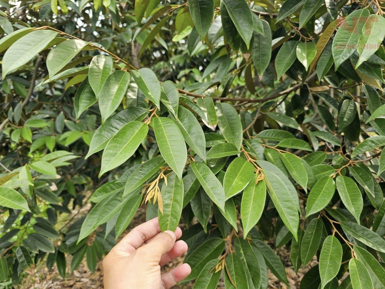 - Ở cây sầu riêng việc nuôi dưỡng được một tán lá đẹp xem như đã thành công một nữa trong việc chăm sóc cây sầu riêng..Một năm cây sầu riêng ra rất nhiều đợt lá, trung bình 4 – 5 lần ở cây giai đoạn phát triển , ở những cây lâu năm quá trình này diễn ra chậm hơn, khoảng 1 – 3 lần trên năm. Cây sầu riêng khoẻ mạnh thì thân to rắn chắc, lá to dày, xanh bóng, lá phủ cánh các cành, tán lá mọc đều về các hướng tạo thành hình chóp. Cây sầu riêng khi không đủ dinh dưỡng, yếu sẽ có bộ lá kém phát triển, lá nhỏ cành xơ xác rụng sạch lá, lá còn lại thì ngã vàng sau đó dễ rụng.