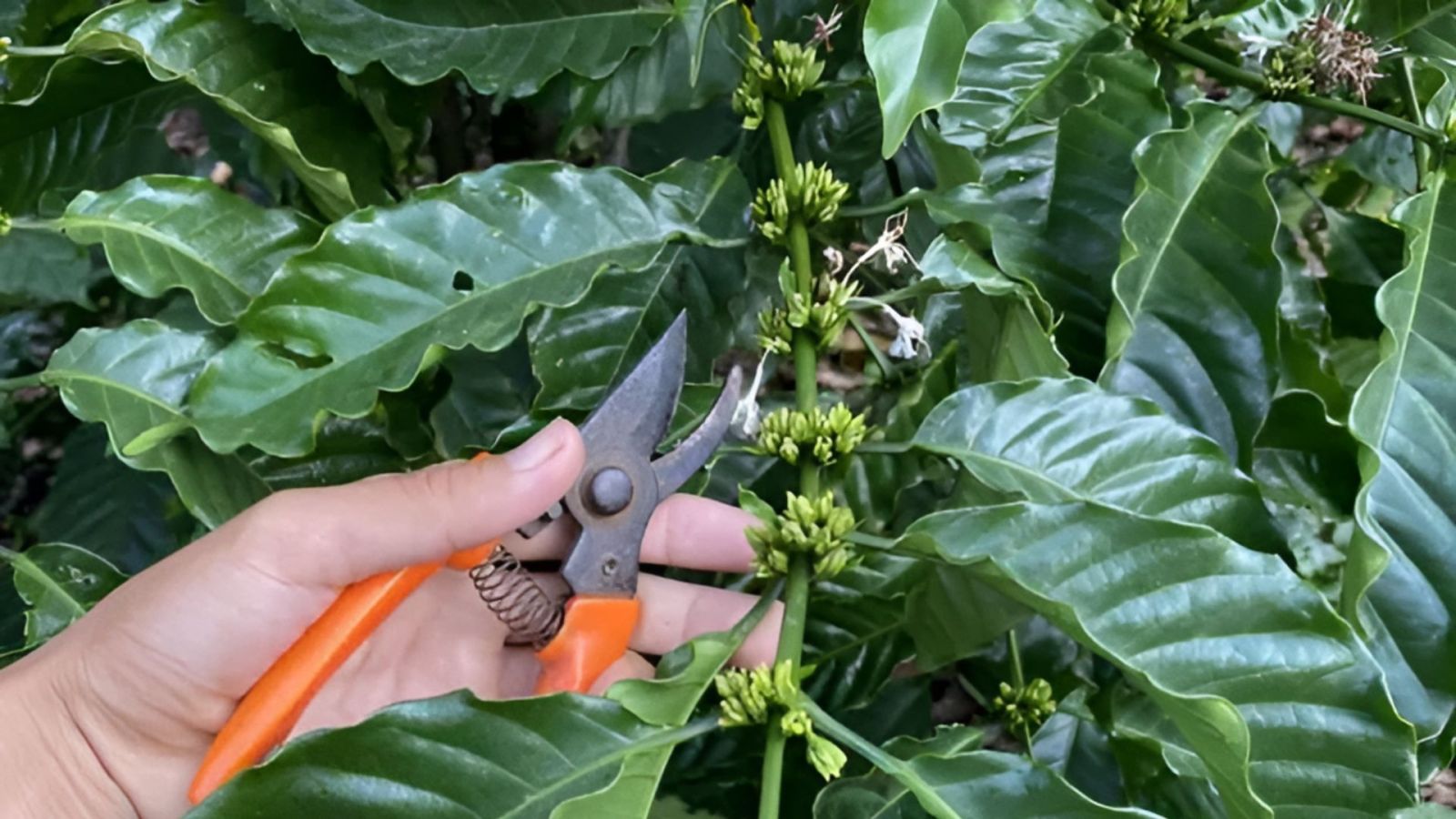 - Sau thu hoạch, quý nhà vườn nên tiến hành tổng vệ sinh vườn bằng cách cắt, phát cỏ ,sau đó tiến hành cắt tỉa cành, tạo lại tán cho cây cà phê là điều quan trọng, nên tiến hành từ 15-20 ngày sau thu hoạch.