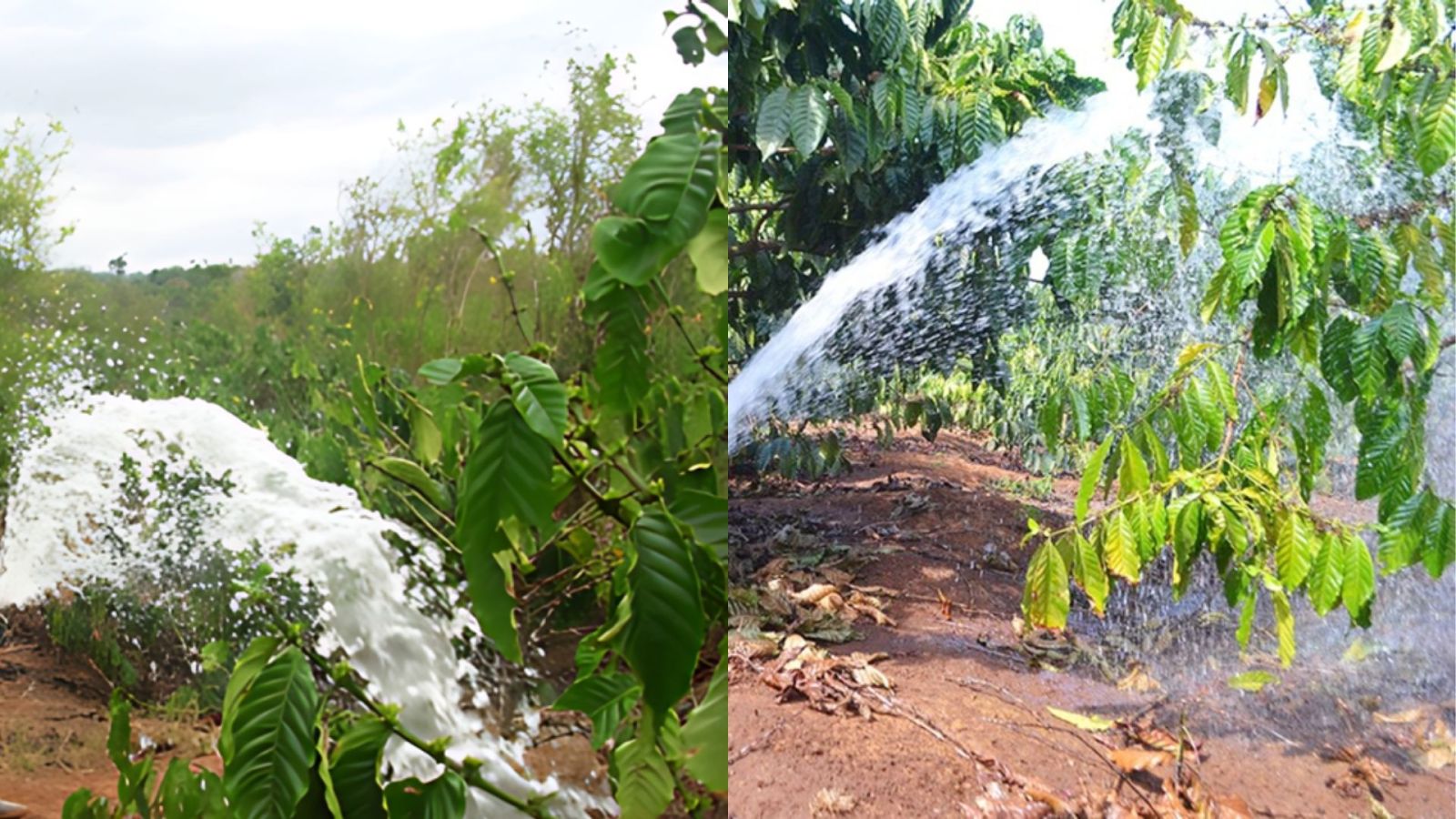 Sau thu hoạch là giai đoạn mùa khô cây cà phê cần nước, vì vậy cần xác định đúng thời điểm, lượng nước, chu kỳ, phương pháp tưới phù hợp để đảm bảo cho cây nở hoa đồng loạt, tăng tỉ lệ đậu trái và đạt năng suất cao cho vụ tiếp theo. Chú ý lượng nước tưới, không nên để đất quá khô hay qua ướt trong 1 thời gian dài, không nên tưới quá nhiều nước trong 1 lần, tùy vào từng vùng miền và khí hậu mà có lượng nước tưới hợp lý. Tiến hành tưới phun áp lực cao để rửa trôi các mầm bệnh như rong rêu, thán thư, nấm hồng, rầy, rệp… đeo bám trên cây.