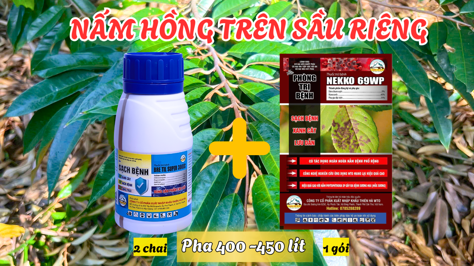 => Quý bà con có thể sự dụng 2 chai thuốc SẠCH BỆNH kết hợp với 1 gói thuốc PHÒNG TRỊ BỆNH pha với 400 – 450 lít nước để phun xịt phòng trị bệnh nấm hồng cho cây sầu riêng. LƯU Ý: để phát huy hết hiệu quả của thuốc thì nhả vườn nên phối thêm 1 chai thuốc TĂNG LỰC để giúp thuốc thấm sâu vào trong tế bào, cây nhanh chống hấp thụ thuốc, tránh thuốc bị rửa trôi hay bốc hơi.
