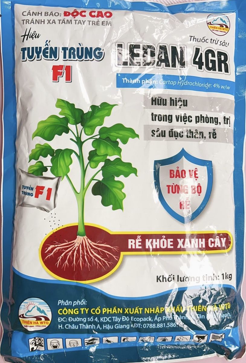 LEDAN 4GR ( TUYẾN TRÙNG F1 ) có thành phần là Cartap Hydrochloride.Với công dụng là thuốc trừ sâu rầy kháng thuốc với hoạt chất mới nhất Cartap.
