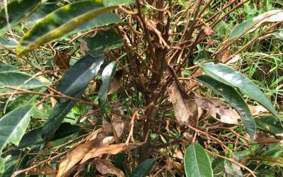 Bệnh khô cành, chết đọt trên cây sầu riêng là tình trạng mà bà con nông dân thường gặp trong quá trình canh tác và chăm sóc cây. Bệnh xảy ra trên cây sầu riêng từ giai đoạn cây còn non cho đến khi cây trưởng thành. Đã được nghiên cứu bởi VIỆN BẢO VỆ THỰC VẬT VIỆT NAM và đã cho kết quả. Hiện tượng này sẽ ngăn chặn sự sinh trưởng và phát triển của cây, ảnh hưởng đến năng suất và chất lượng của mùa vụ, gây thất thoát kinh tế của bà con canh tác sầu riêng. Khi xảy ra tình trạng này thì quý nhà nông cây lưu ý về cách chăm sóc cây đúng cách để bệnh không phát triển mạnh và gây hại nặng cho cây. Xin kính mời quý nhà vườn theo dõi bài viết ngày hôm nay để biết thêm về bệnh làm cho cây sầu riêng bị khô cành, chết đọt.